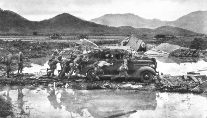 1941年12月8日,日本军队越过深圳河,袭击了香港。 (由中国香港文化研究所提供的照片)
