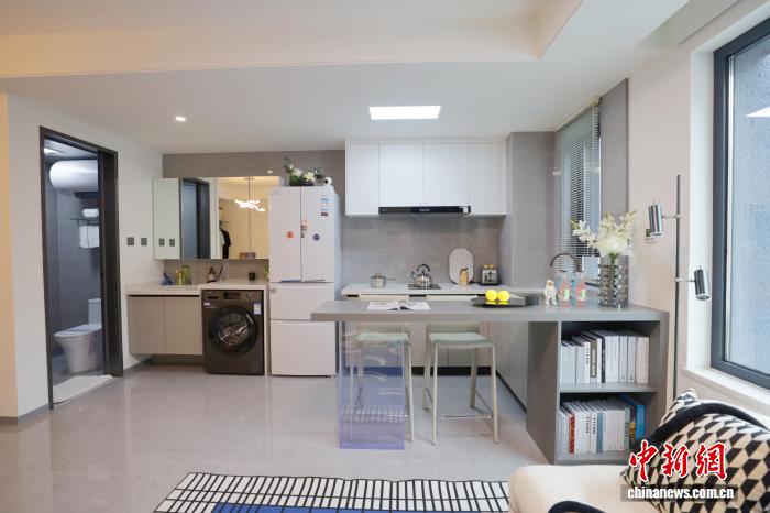 这张照片显示了青年社区的42平方米模型房间。中国新闻服务记者张·林胡(Zhang Linhu)的照片