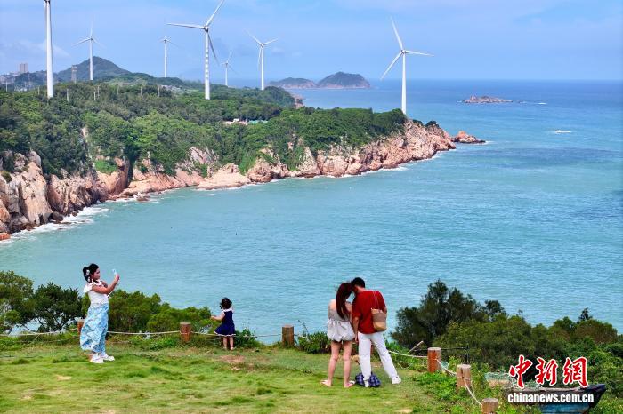 中国新闻服务,富州,8月20日(Ye Qiuyun)Longwangou Beach,Pingtan,Fujian和Windmills在风中旋转。在Ndend市的小北区镇,游客沿着沿海道路走,进入沙滩和海浪……今年夏天,钓鱼,在美丽的村庄中钓鱼,跳跃和记录已成为一种流行的形式。